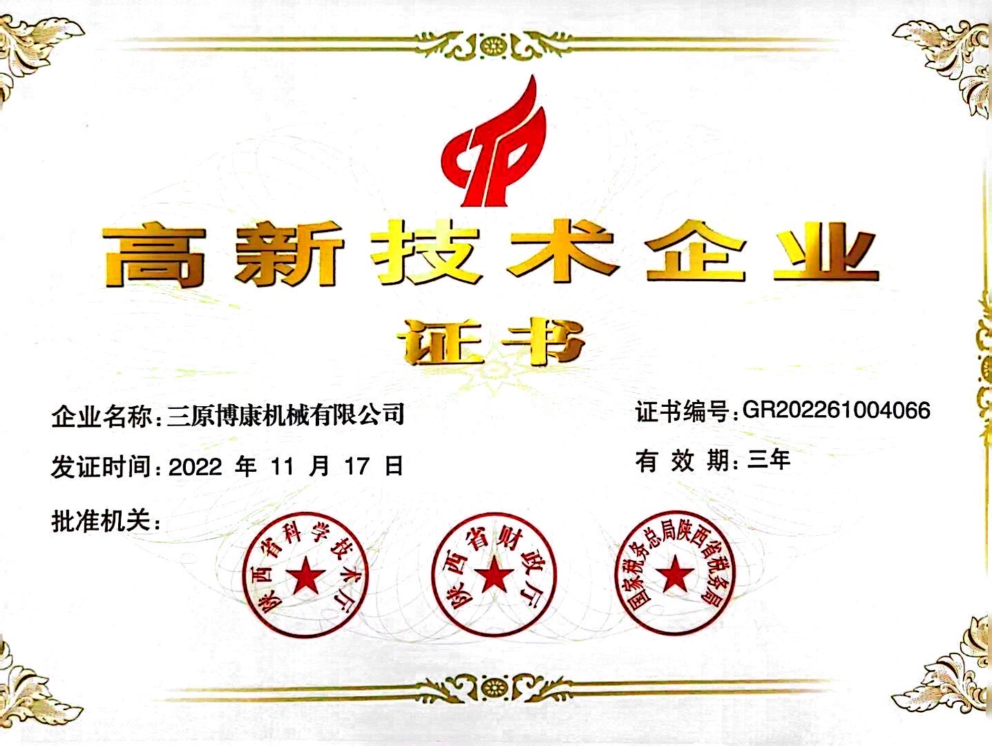 高新技術企業證書